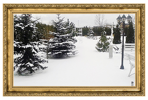 Ciekawym rozwiązaniem jest klimatyczne przyjecie, na tle krajobrazu otulonego śniegiem.